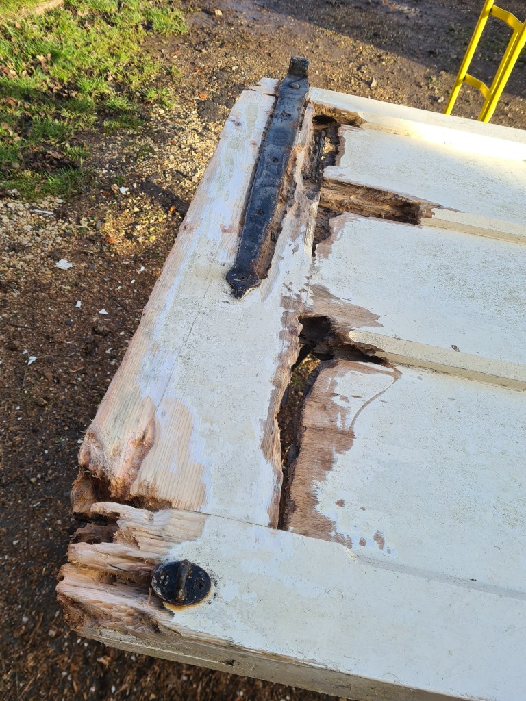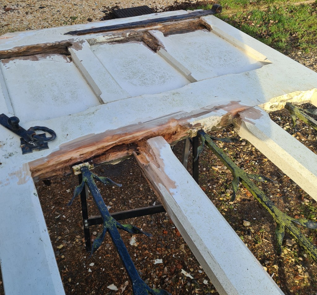 First job was to lift the entire gate off it’s hinges and get all of the rot stripped out of it and see just how bad the damage was. At this point a friend of mine who’s a painter happened to call round to the workshop and was adamant that this was not repairable and would need to be replaced. Whilst that would have been an option it would have been a real shame to loose all the original timber, not to mention the expense.