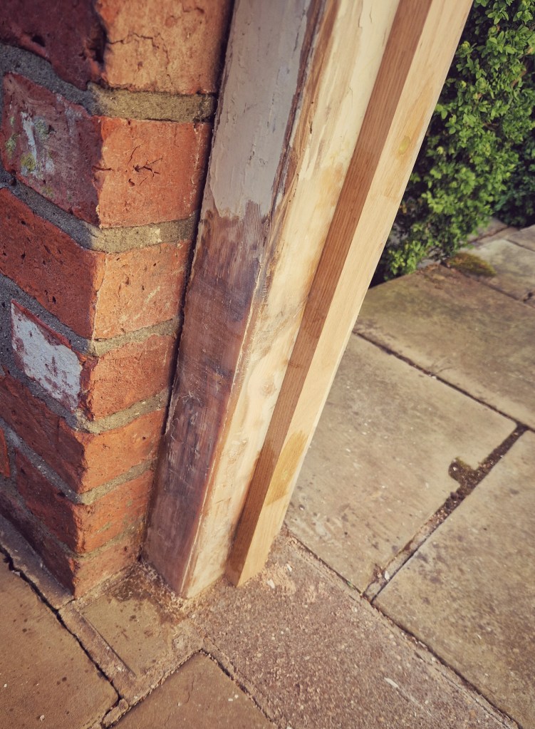 After sanding the repair down all that was left to do was replace the door jam with a new piece of timber. For this I used hardwood for a long lasting repair. It’s always the part of a frame that takes the most stress.