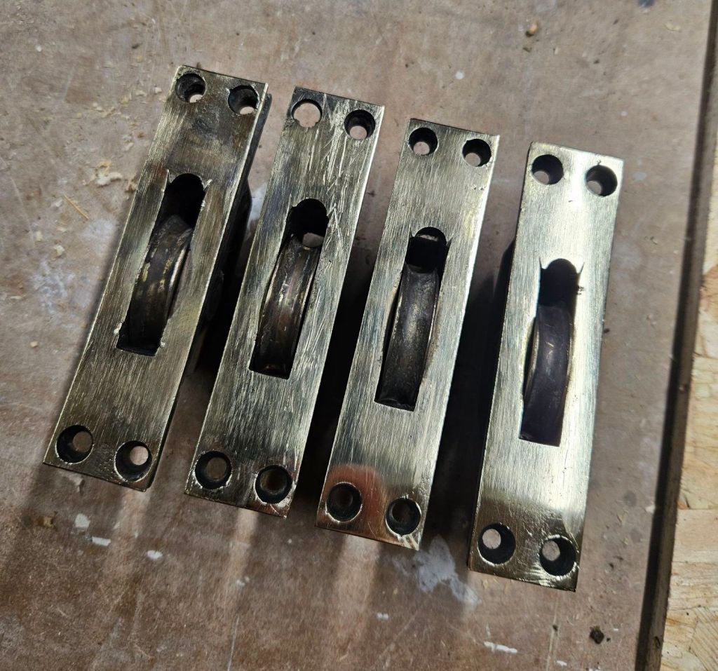 And those pulleys… hidden under thick gloss paint were beautiful* solid brass originals. Most windows from this era have cast iron pulleys that just get painted over. These were something special.