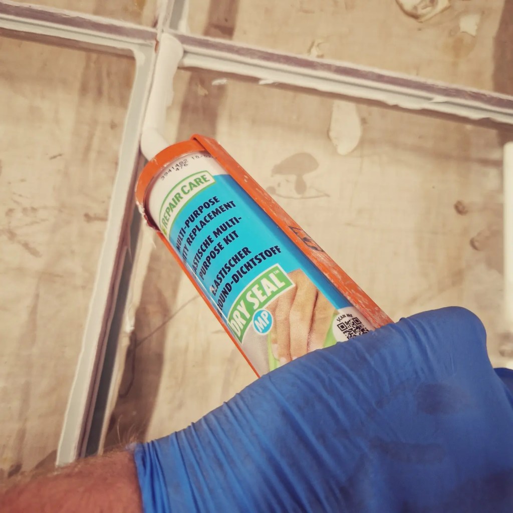 Glazing with Repair Care Dry Seal MP Gable end facia board repairSash weight re balanced with additional lead counterweight