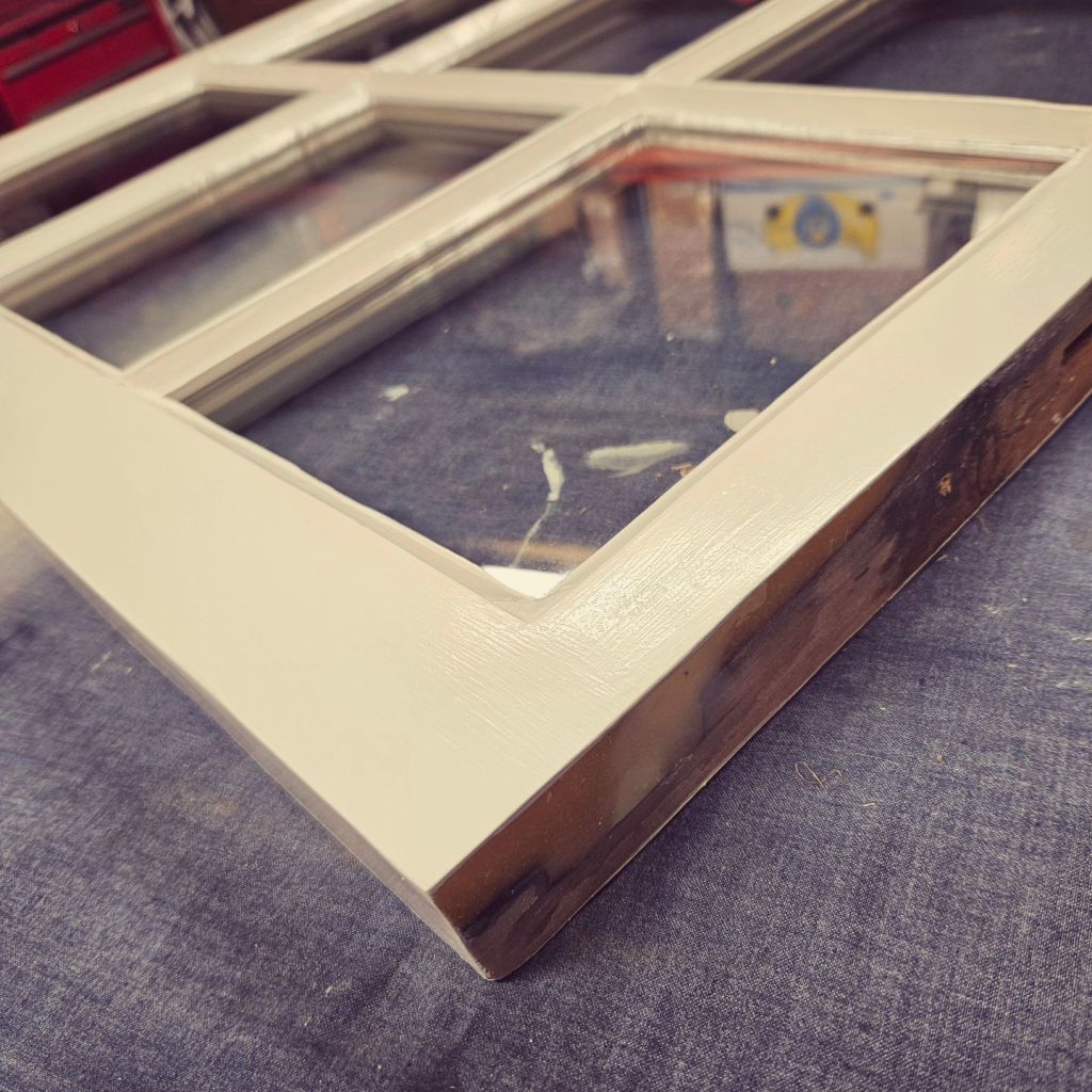 Repair to bottom rail corner of bottom sashResin repair to existing splice that had failedDamaged glazing bar rebuilt using resin Sash window bottom rail rebuild using resin