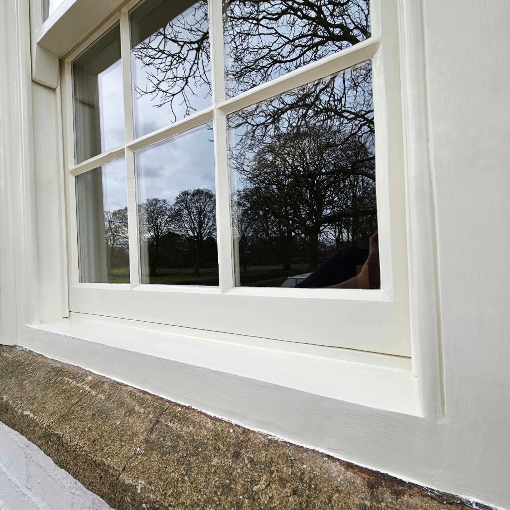 Before – AfterFull corner rebuild on top sash windowFinished sash window fitted with slimline double glazing units.Sash window fully restored and fitted with heritage slimline double glazing.